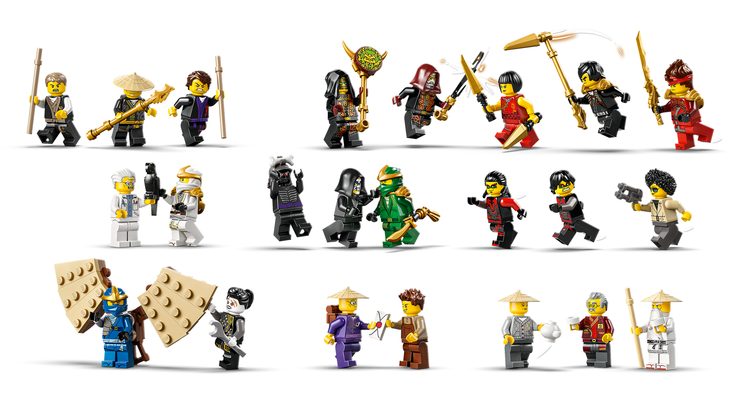 • 23 NINJAGO® MINIFIGUREN: Das Set beinhaltet Charaktere aus der LEGO® NINJAGO TV-Serie, darunter auch alle 7 ursprünglichen Ninja und zum ersten Mal 3 Minifiguren zum Sammeln auf einem Ständer