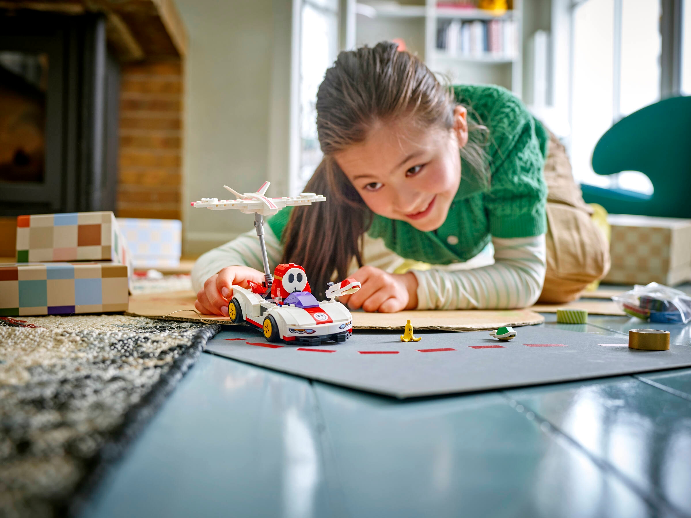 Interaktiver Spielspaß: Lass LEGO® Mario™, LEGO® Luigi™ oder LEGO® Peach™ (Figuren nicht enthalten) den Flügel-Raser fahren, um Mario Kart™ Sound- und Spezialeffekte zu erzeugen, die den Rennstart, das Driften, das Gleiten und Ähnliches darstellen