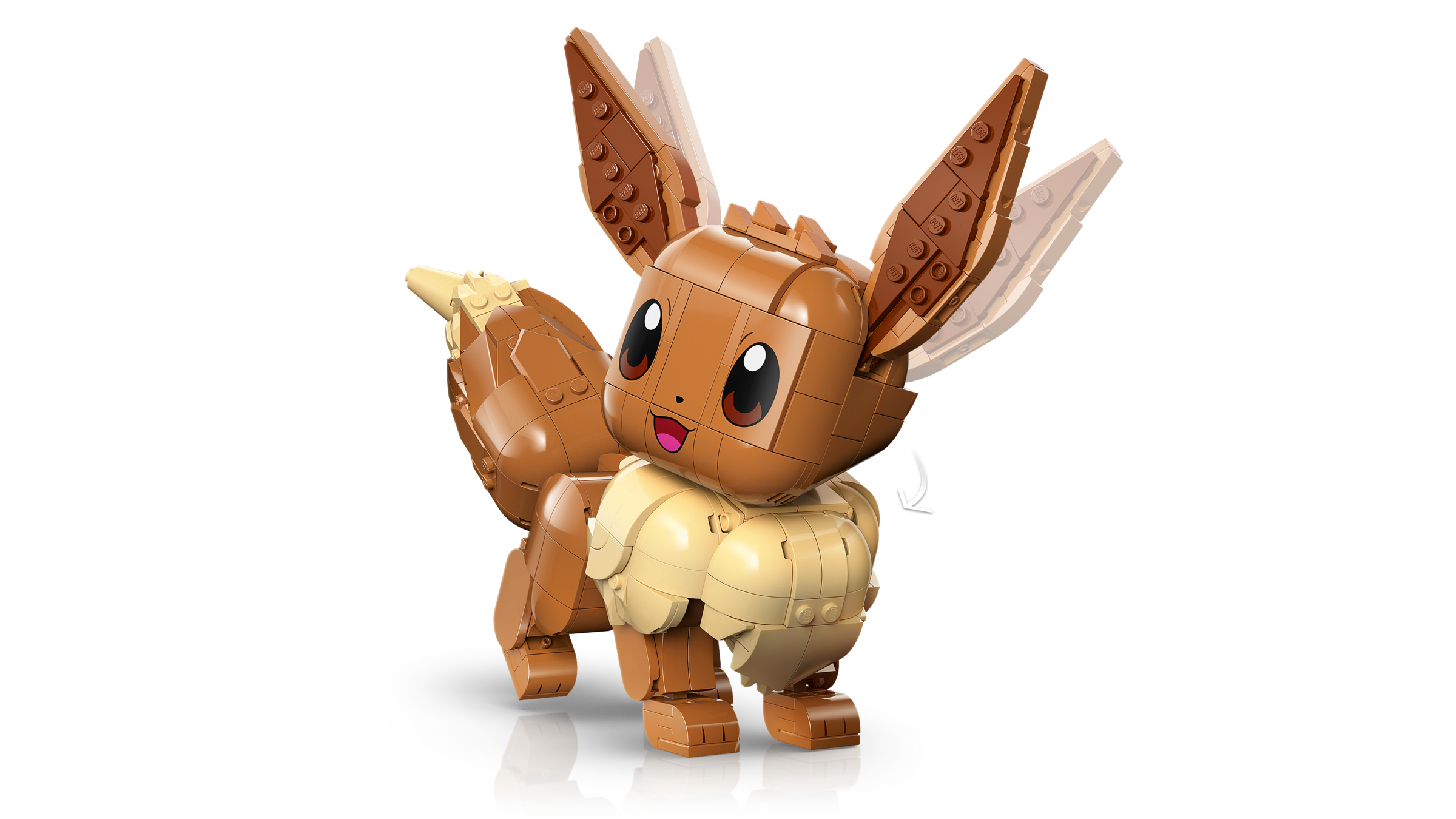 NIEDLICHE LEGO® FIGUR: Du kannst das süße Gesicht, die Ohren, die Füße und die Beine von Evoli bewegen und seinen Schwanz knicken, um die Pokémon-Figur vom Typ Normal in legendäre Posen zu bringen