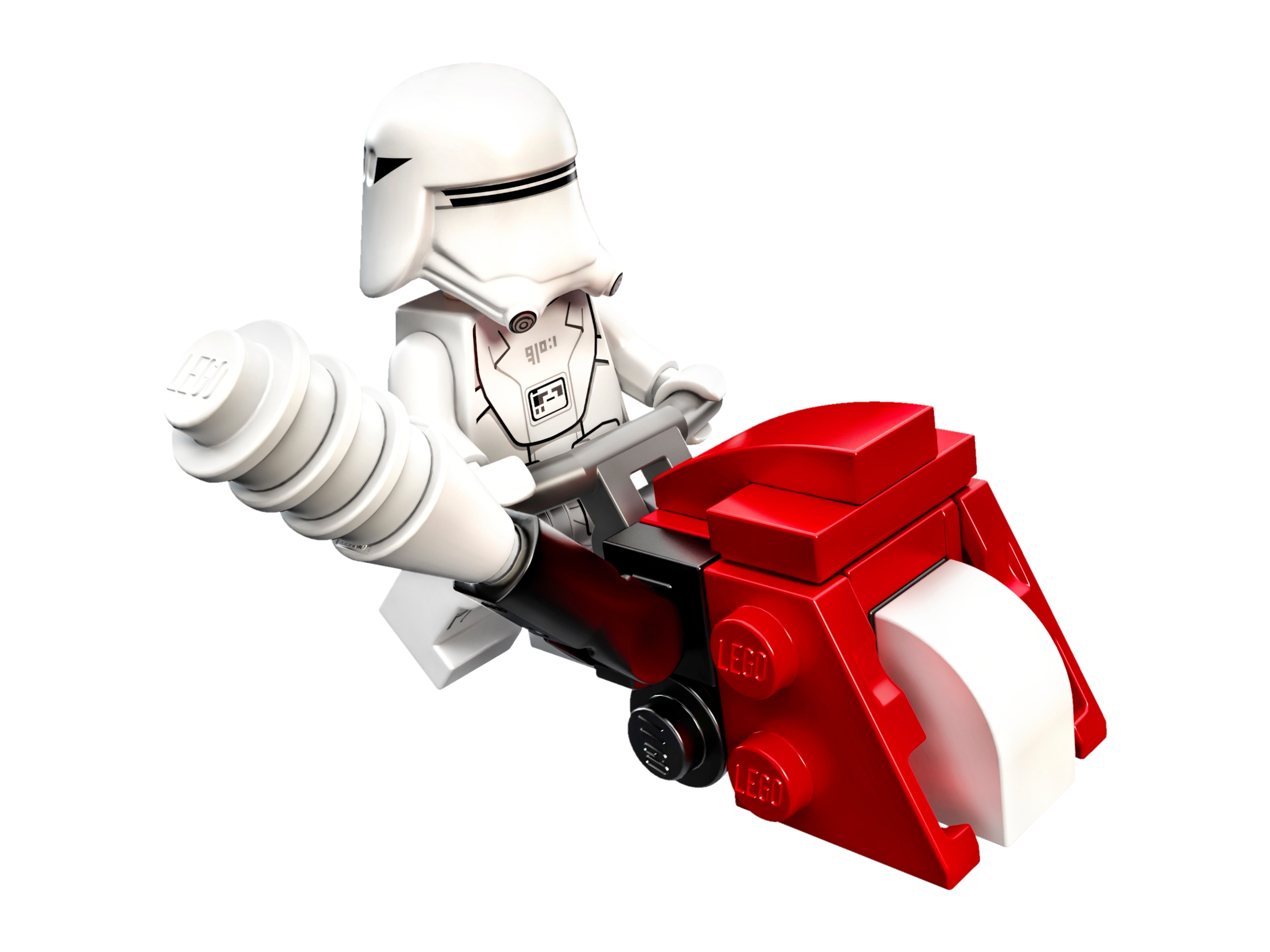 Enthaltene Fahrzeuge: The Ghost, The Phantom, Stormtrooper transport, Rey's Speeder, Millennium Falcon, Snowspeeder, Kylo Ren's Command Shuttle, Y-wing, TIE Striker, Hovertank, AT-ST, Blaster-Kanone, Schneeschleuder und Schlitten mit Boosterraketen!