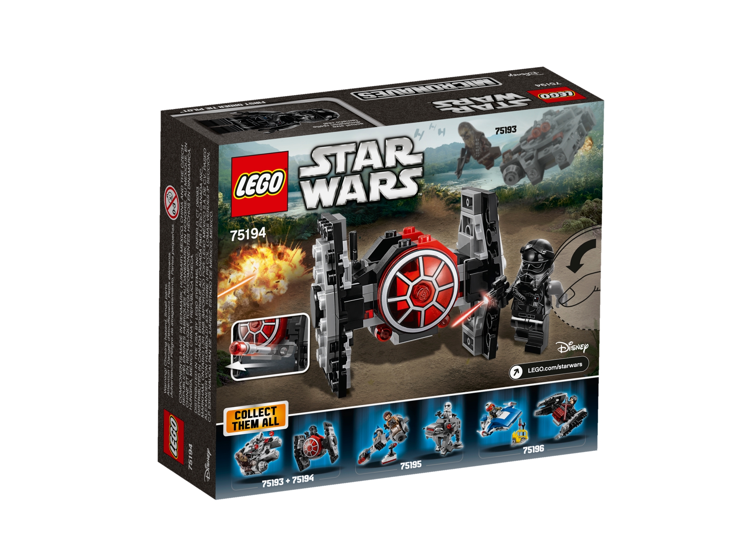 Spiele actiongeladene Weltraumgefechte mit dem First Order TIE Fighter Microfighter nach. Dieses LEGO® Star Wars Set enthält 2 Raketen, Platz für den als Minifigur ebenfalls enthaltenen First Order TIE Piloten mit Blaster-Pistole und roten Details aus dem Kinoerfolg Star Wars: Das Erwachen der Macht.
