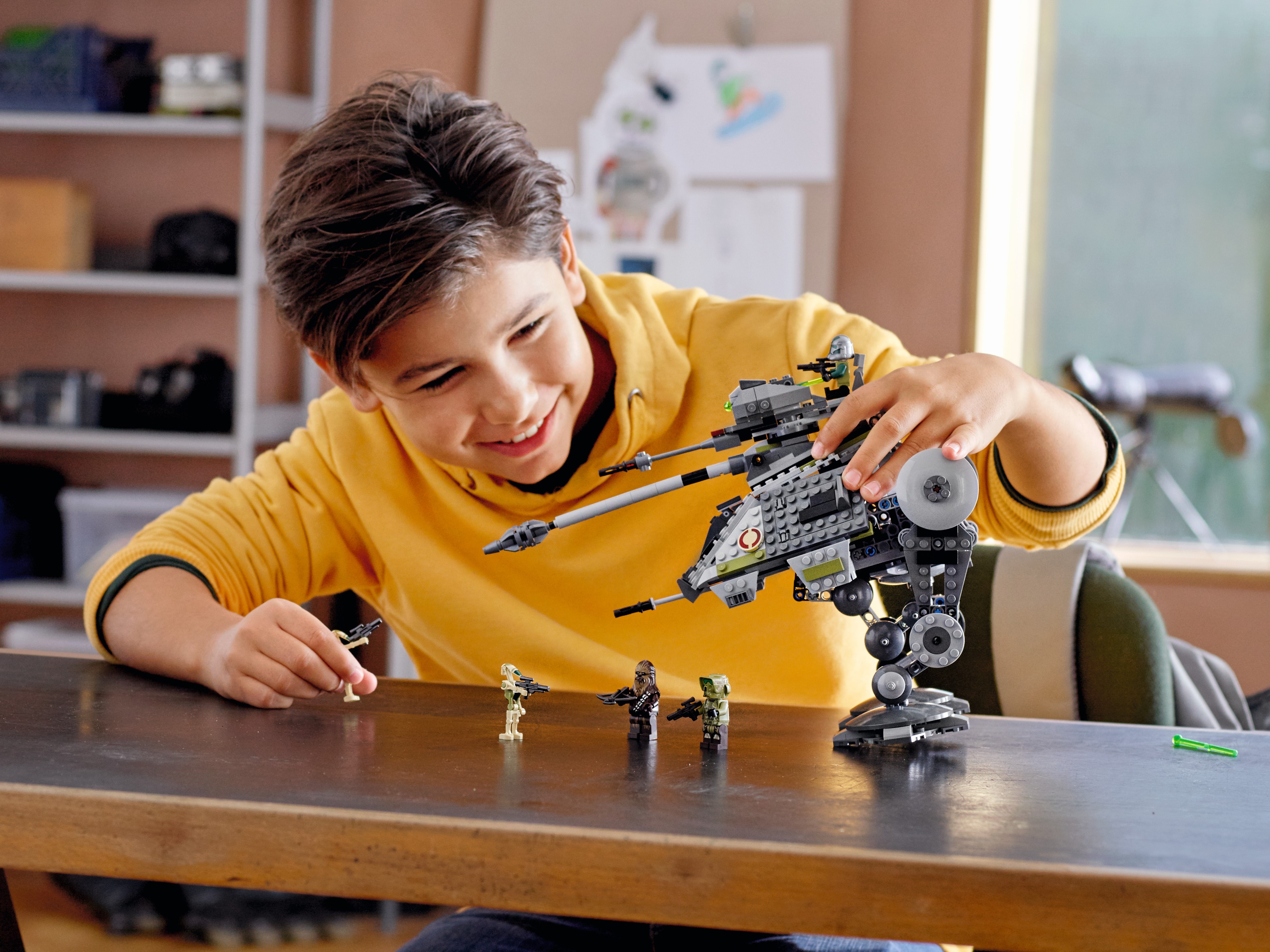 Mit dem robusten LEGO® Star Wars™ „AT-AP Walker“ (75234) erhält jede LEGO Fan-Sammlung eine ordentliche Portion Kraft. Dieses beeindruckende Modell verfügt über Beine mit Gelenken, ein einklappbares drittes Bein sowie ein zu öffnendes Oberteil und Seiten, hinter denen sich ein detailreiches Cockpit für 2 Minifiguren befindet. Das Modell enthält außerdem einen dreh- und anhebbaren Geschützturm mit Sitzplatz für eine Minifigur sowie einen federunterstützen Shooter für spannende Action-Abenteuer. Mit Minifiguren von Chewbacca, Klonkommandant Gree und einem Kashyyyk Clone Trooper sowie 2 Kashyyyk Battle Droid LEGO Figuren ist dieses Konstruktionsspielzeug zum Sammeln das perfekte Geburtstagsgeschenk für Kinder.