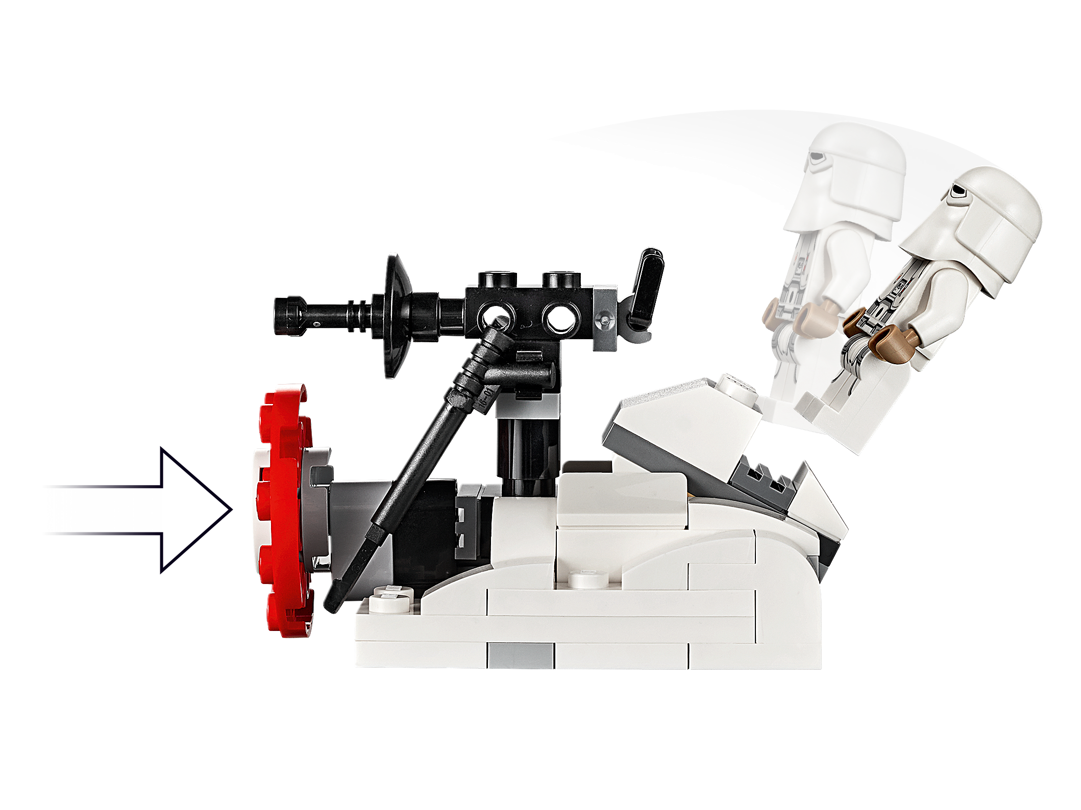 Triff die rote Zielscheibe, sodass der Snowtrooper mit seinem Stativgeschütz von der Basisplatte fällt. Triff die blaue Zielscheibe und bring den Stromgenerator dadurch zum „Explodieren“, sodass der Rebel Trooper in die Luft geschleudert wird.