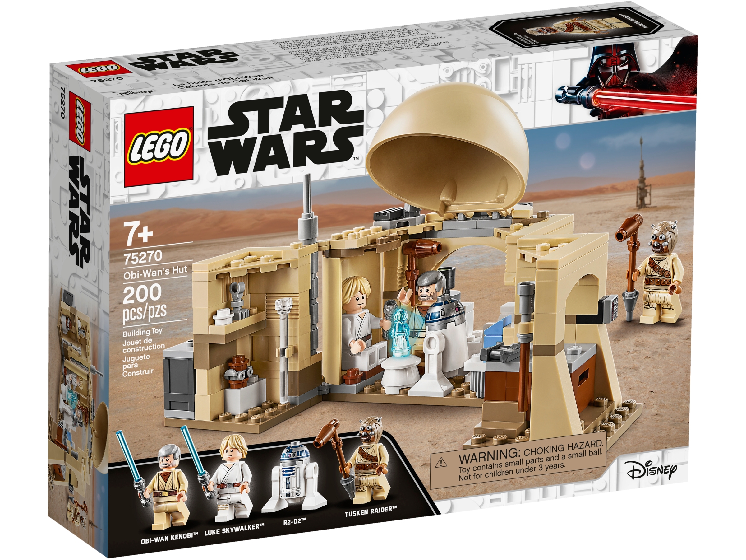 Junge Jedi-Meister werden das LEGO® Star Wars™ Bauset „Obi-Wans Hütte“ (75270) lieben. Das Trainingsgerät und Prinzessin Leia als Hologramm-Element (neu ab Januar 2020) ermöglichen das Nachstellen klassischer Szenen aus „Star Wars: Eine neue Hoffnung“. Obi-Wan Kenobi und Luke Skywalker mit Lichtschwertern, R2-D2 sowie einen Tusken-Räuber als Minifiguren inspirieren zu spannenden Rollenspielen.