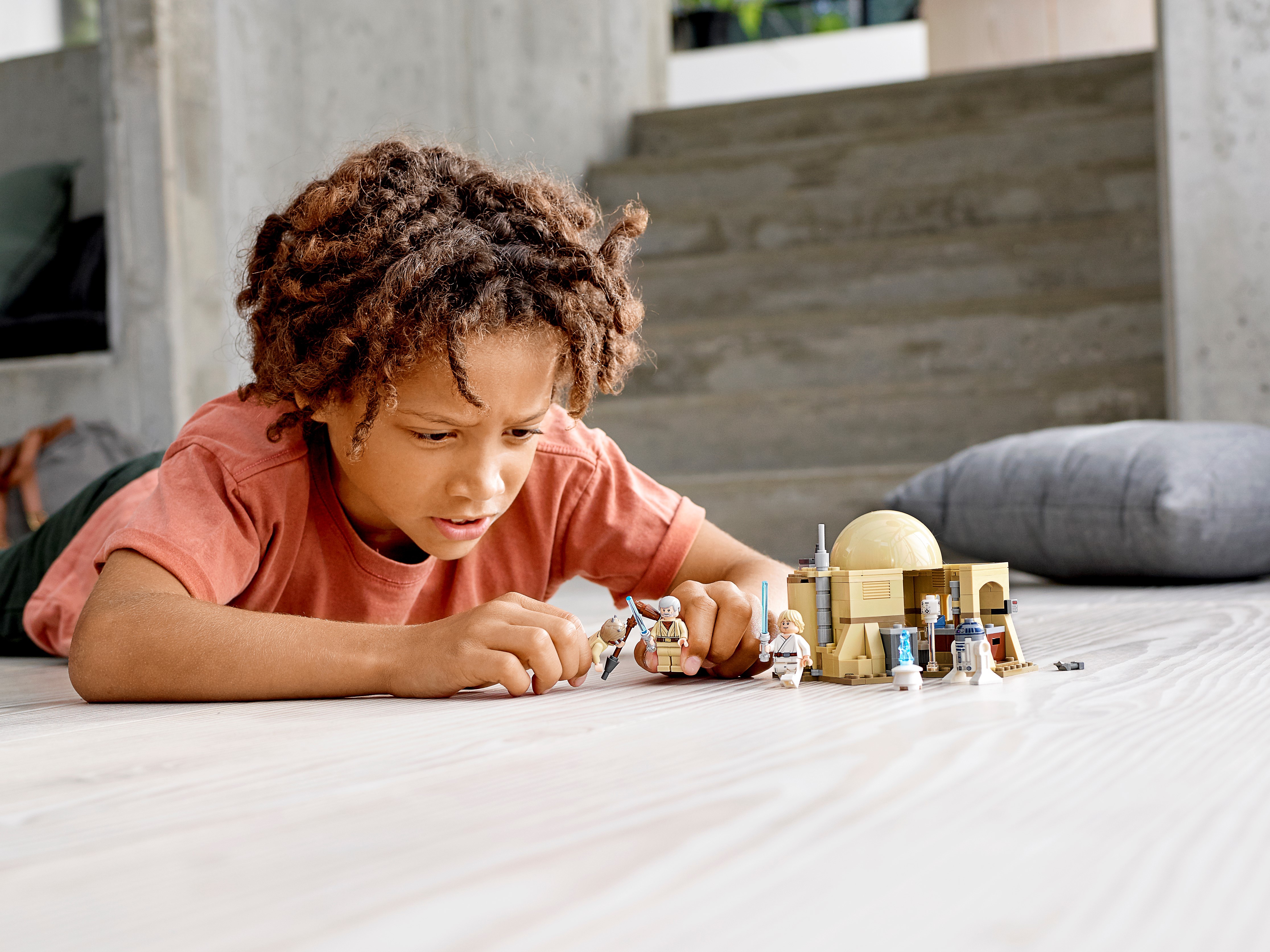 Obi-Wan Kenobis Hütte auf Tatooine als LEGO® Baumodell (75270) lässt sich zum Spielen aufklappen. Zahlreiche Details inspirieren Kinder dazu, Szenen aus „Star Wars: Eine neue Hoffnung“ nachzustellen und sich neue Geschichten auszudenken!