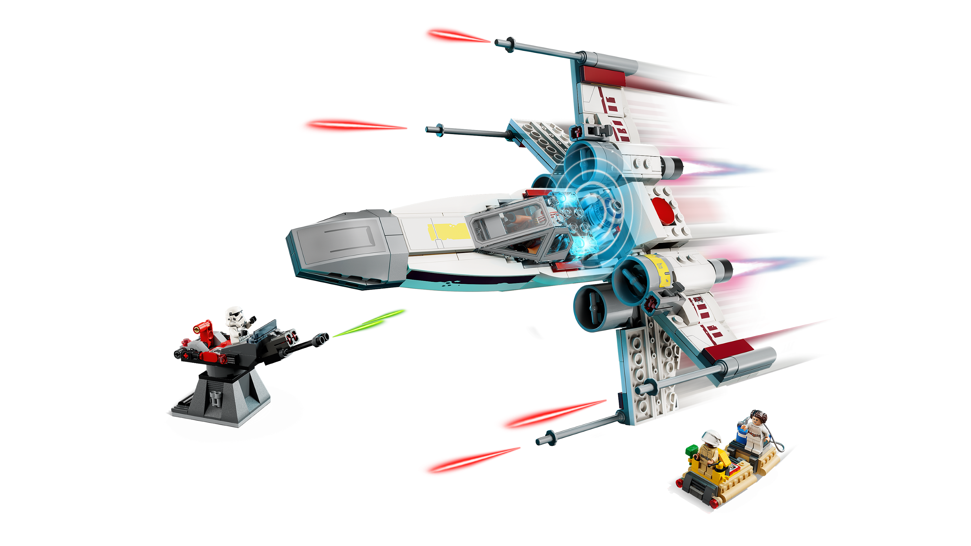 ABMESSUNGEN: Der X-Wing aus diesem 581-teiligen Set ist 6 cm hoch, 22 cm lang und 19 cm breit. Die SMART Brick Akkulaufzeit nach einem Ladevorgang beträgt ungefähr 45 Minuten