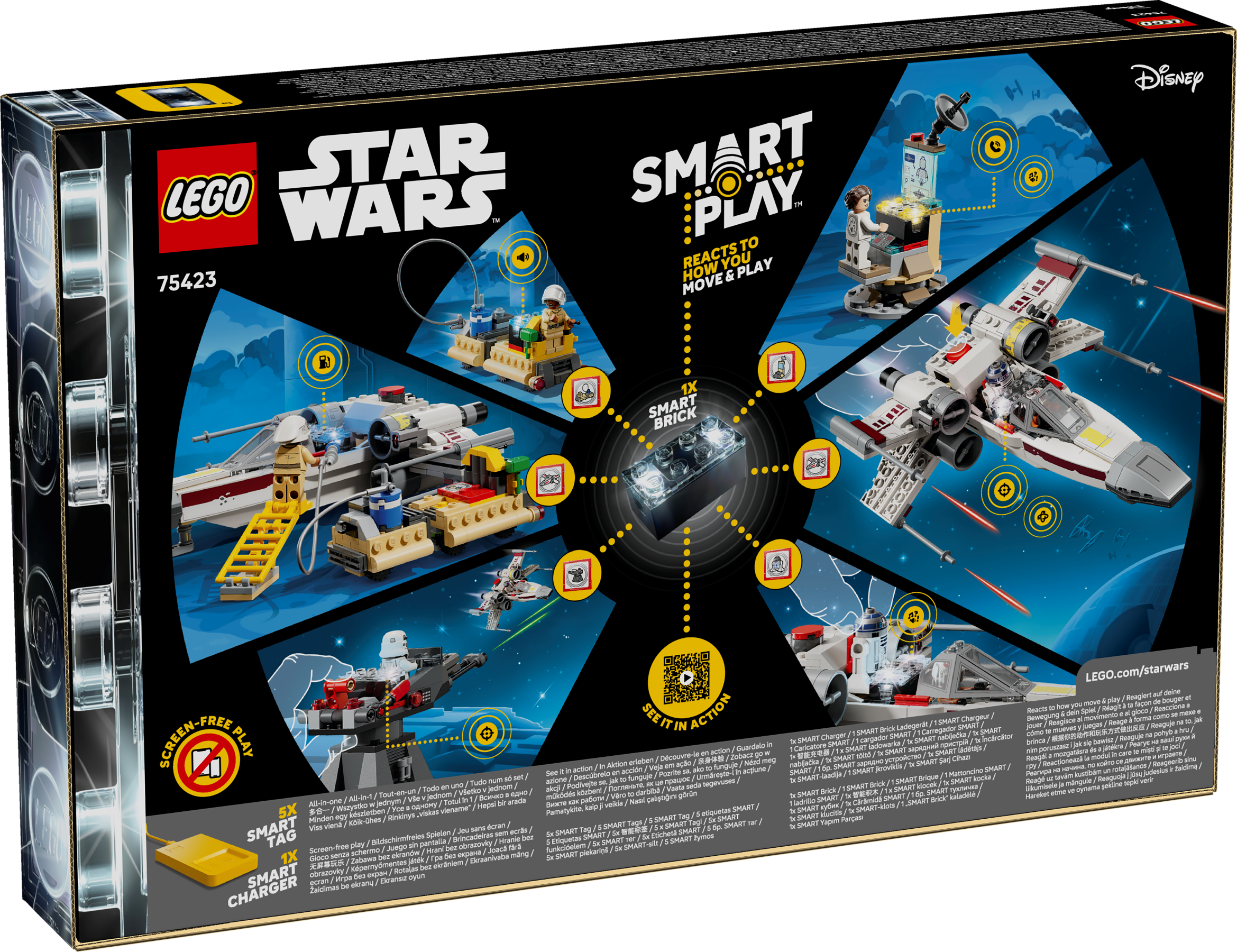 INTERAKTIVES SPIELZEUG: Freue dich auf spannende Star Wars™ Missionen mit Lukes Rot Fünf X-Wing (75423). Das LEGO® SMART Play™ System beinhaltet einen SMART Brick und ein SMART Brick Ladegerät