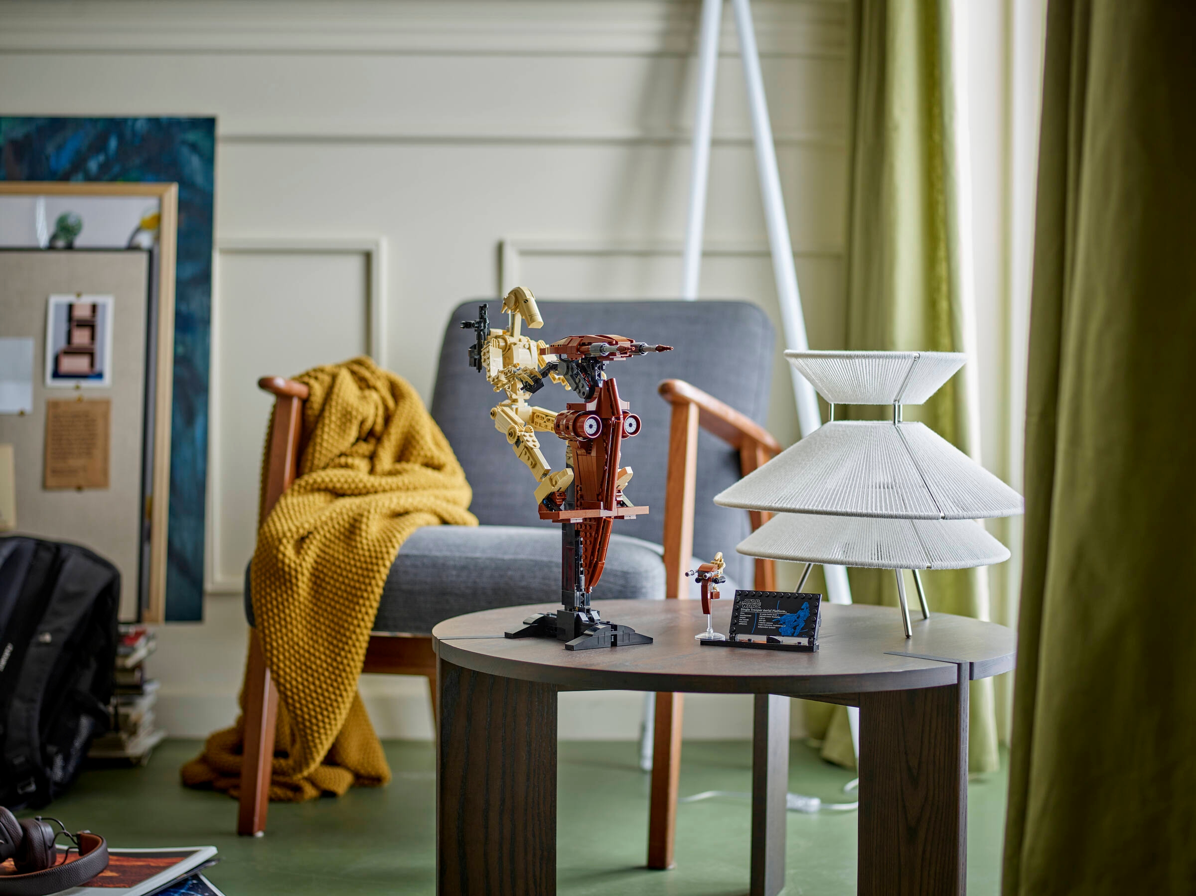 • Coole Schreibtischdeko: Auf oder neben dem Ständer mit integrierter Infotafel finden der LEGO® Kampfdroide und seine STAP Platz