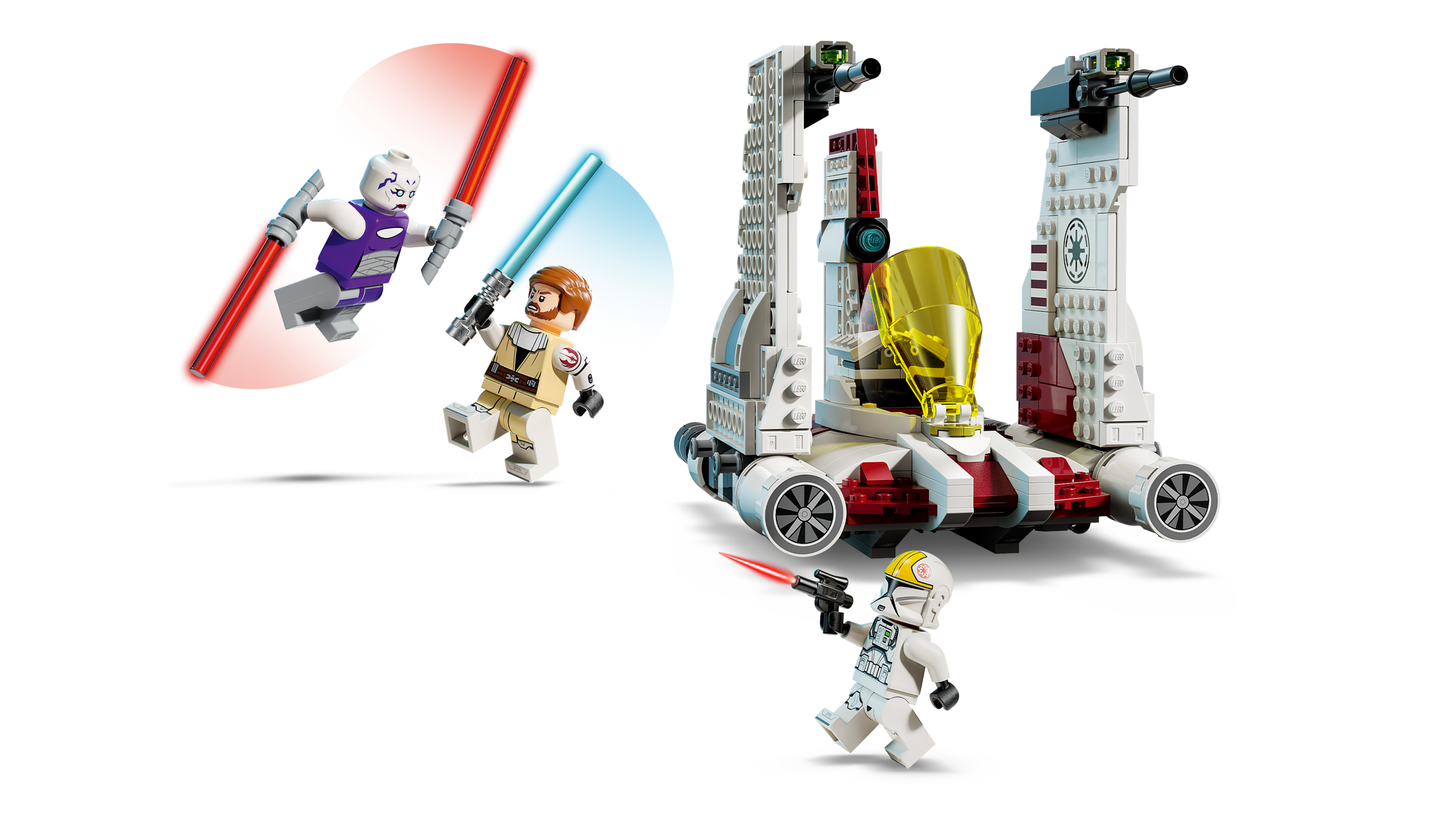 Neben dem Sternjäger gehören auch 3 LEGO Star Wars Minifiguren zu diesem Bau- und Spielset. Asajj Ventress mit 2 roten Lichtschwertern (mit besonders gekrümmten Griffen) und Obi-Wan Kenobi mit seinem blauen Lichtschwert können sich packende Duelle liefern.
