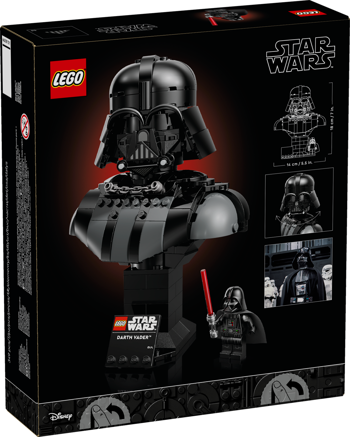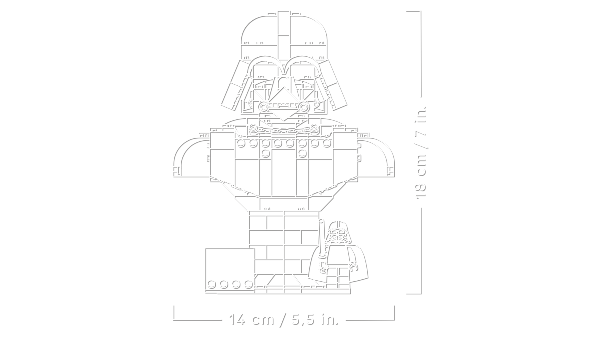 ABMESSUNGEN: Die Darth Vader Büste aus LEGO® Steinen ist 18 cm hoch, 14 cm breit und 9 cm tief. Das 349-teilige Set ist eine coole Star Wars™ Zimmerdeko