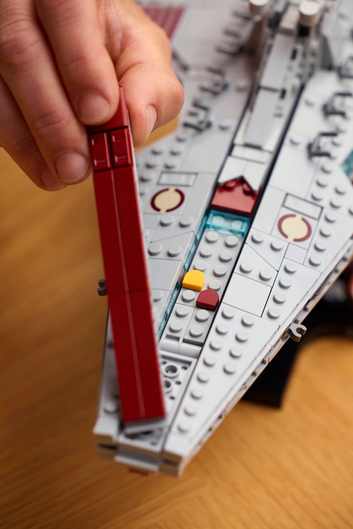 • AUTHENTISCHE DETAILS: Bilde die stromlinienförmige Silhouette und die markanten Erkennungszeichen des legendären Angriffskreuzers der Venator-Klasse mit LEGO® Steinen nach