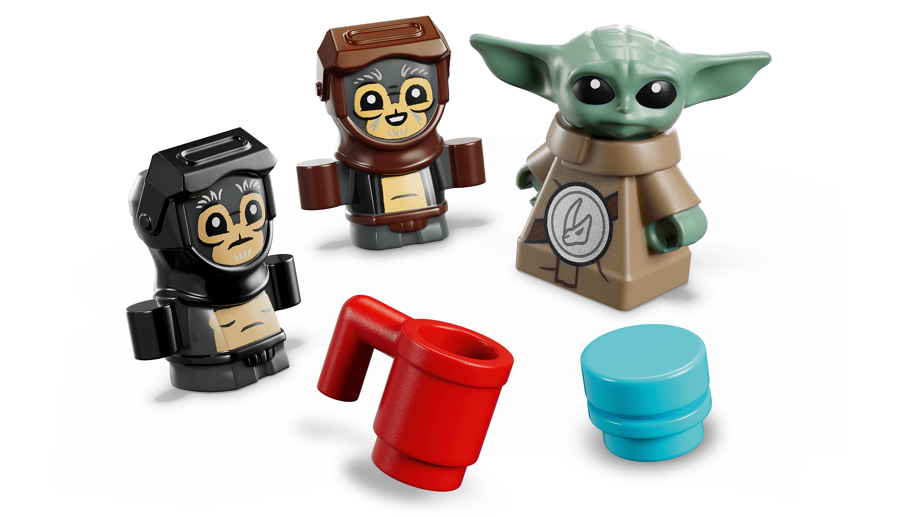 3 LEGO® STAR WARS™ FIGUREN: Steck die LEGO Figur Grogu und 2 Anzellaner insCockpit oder in den Hauptrumpf des Sternenschiffs