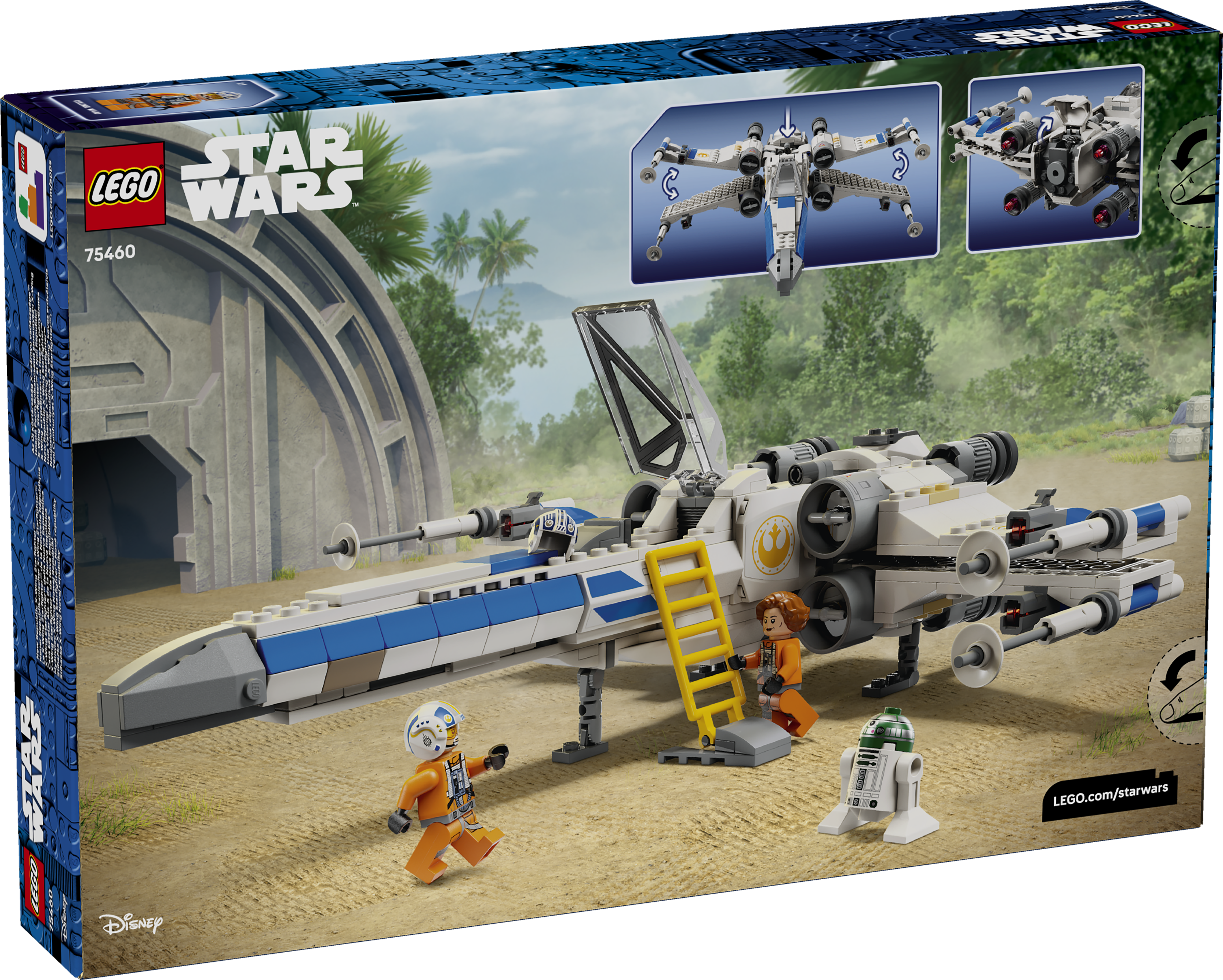 LEGO® Star Wars™ X-Wing Starfighter der Neuen Republik (75460) lässt Kinder ein legendäres Raumschiff nachbauen. Bilde den X-Wing in seinem klassischen Design und im spektakulären Blau und Weiß der Neuen Republik nach – genau wie in Star Wars: TheMandalorian and Grogu. Steck deine Ausrüstung ins Heckstaufach und kontrolliere die Triebwerke vor deiner nächsten Mission. Lass entweder Colonel Ward oder Carson Teva den Sternjäger steuern und setz den LEGO Astromech-Droiden der Neuen Republik hinter das LEGO Minifigur-Cockpit. Zieh das Fahrwerk ein, drück den Knopf, um die Flügel in den Angriffsmodus zu bringen, und feure die 4 Shooter ab.