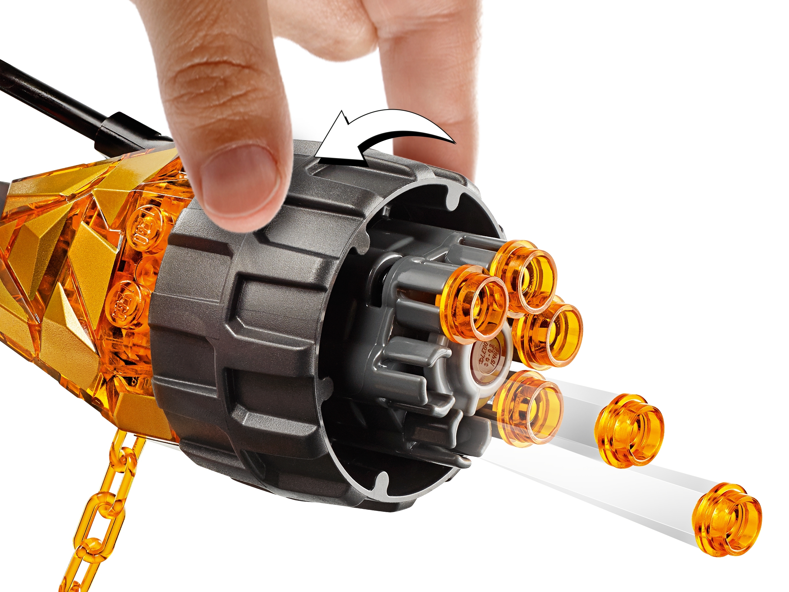 Die baubare Molten Man Figur verfügt über bewegliche Arme und Beine und einen beweglichen Kopf, eine greifende Klaue, einen 6-fachen Schnellshooter, baubare „schmelzende“ Objekte wie ein halbes Auto, eine Straßenlampe, eine Ampel und eine Kette, Geschmolzene-Lava-Elemente und zahlreiche Befestigungspunkte für Minifiguren.
