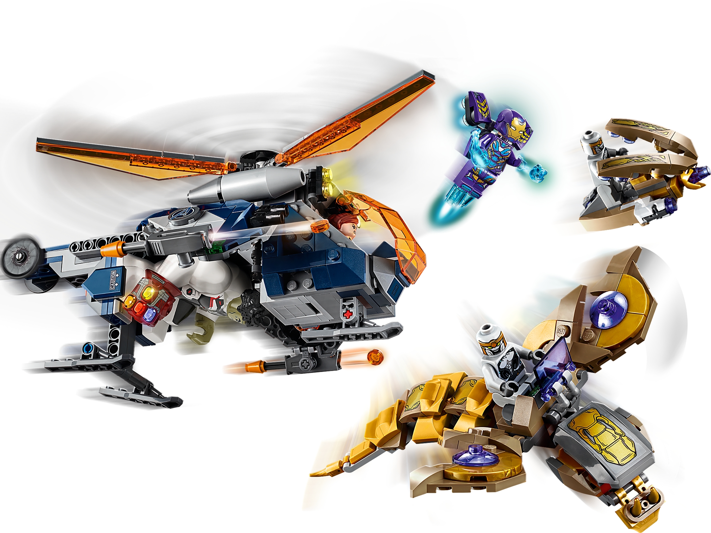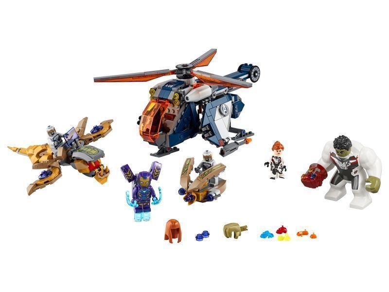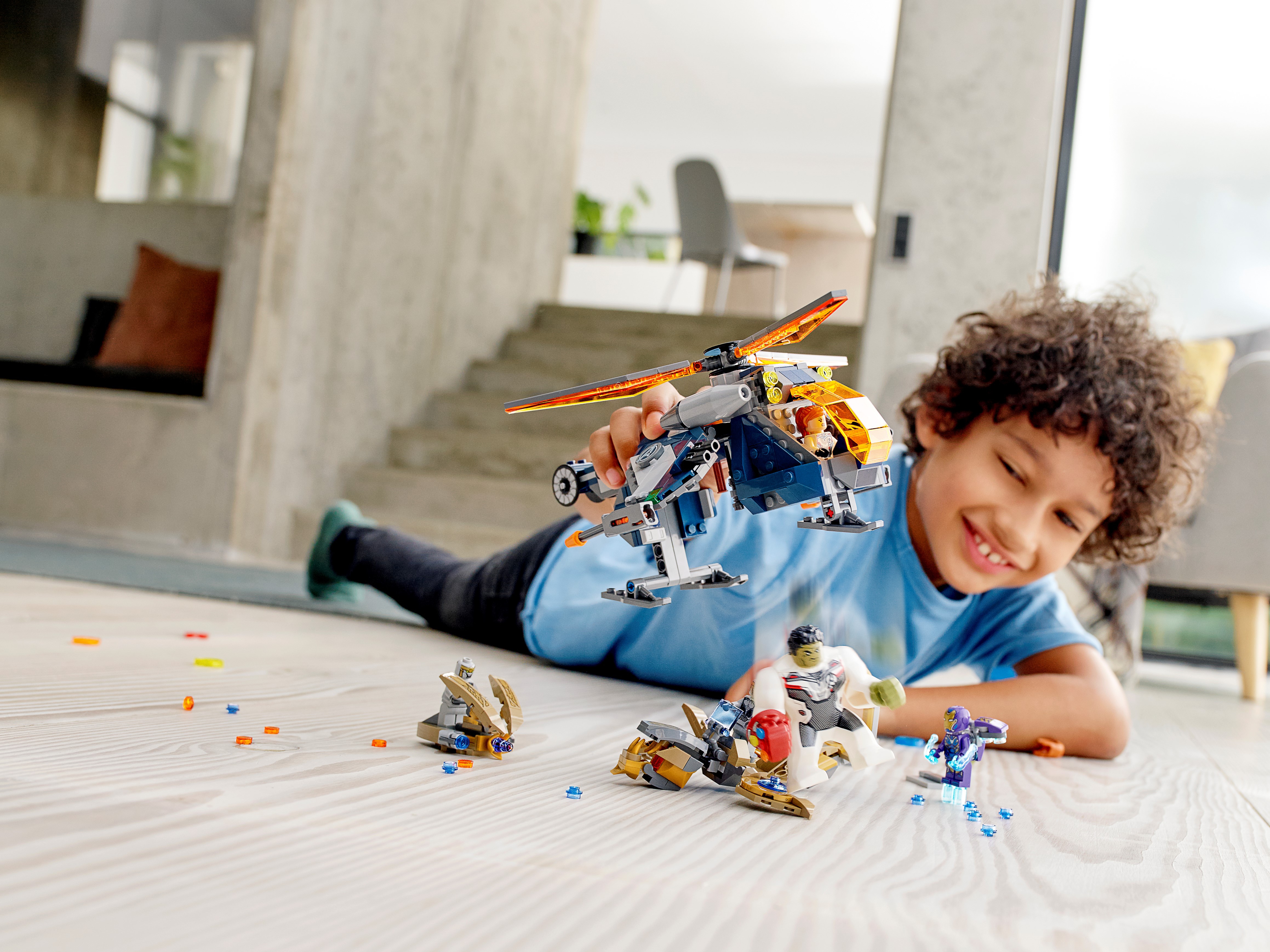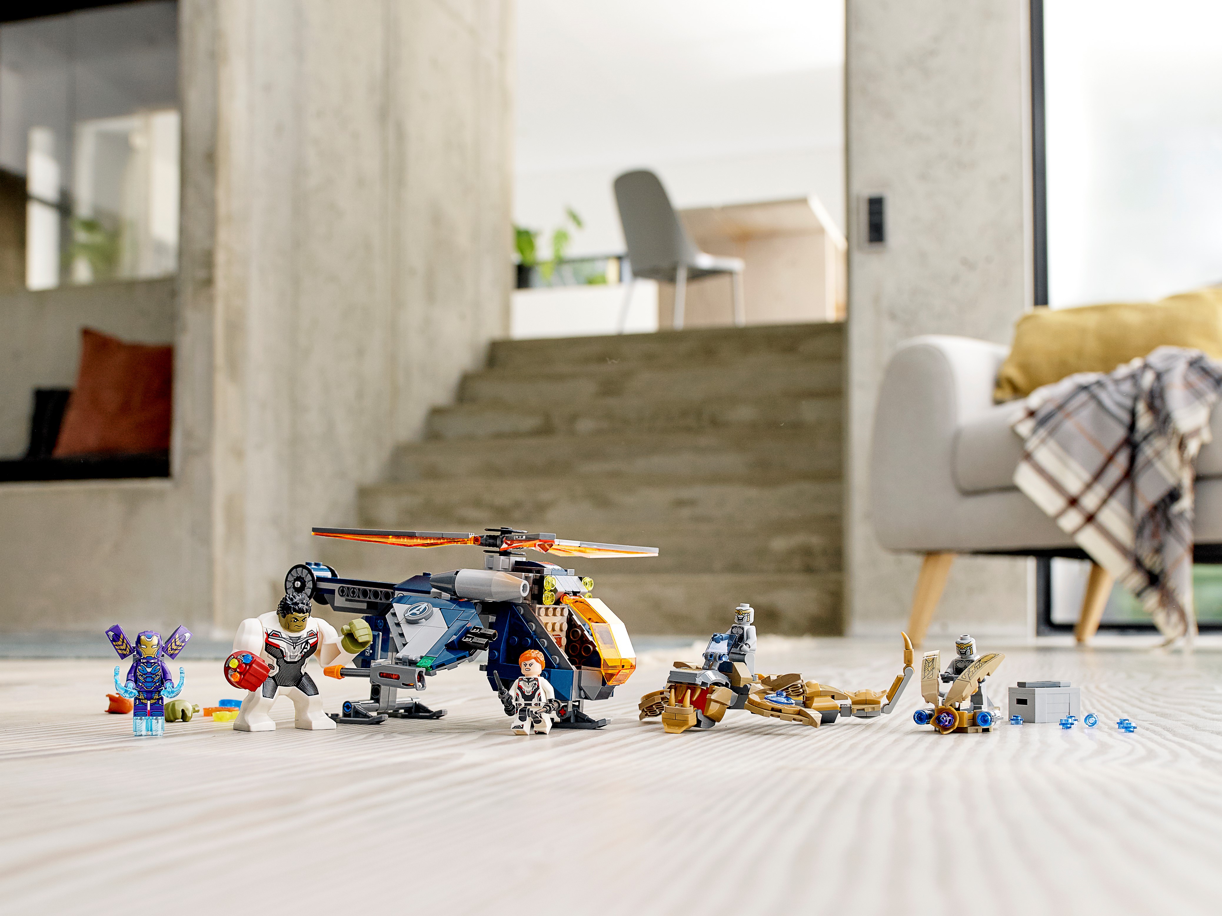 Kinder können in die Rolle von Rescue, Black Widow und Hulk schlüpfen. Mit einem Spielzeug-Helikopter zum Zusammenbauen, der Raketen abfeuert, können Actionszenen aus dem Marvel-Film Avengers: Endgame nachgespielt und die 2 feindlichen Chitauri mit dem beweglichen Leviathan in die Flucht geschlagen werden.