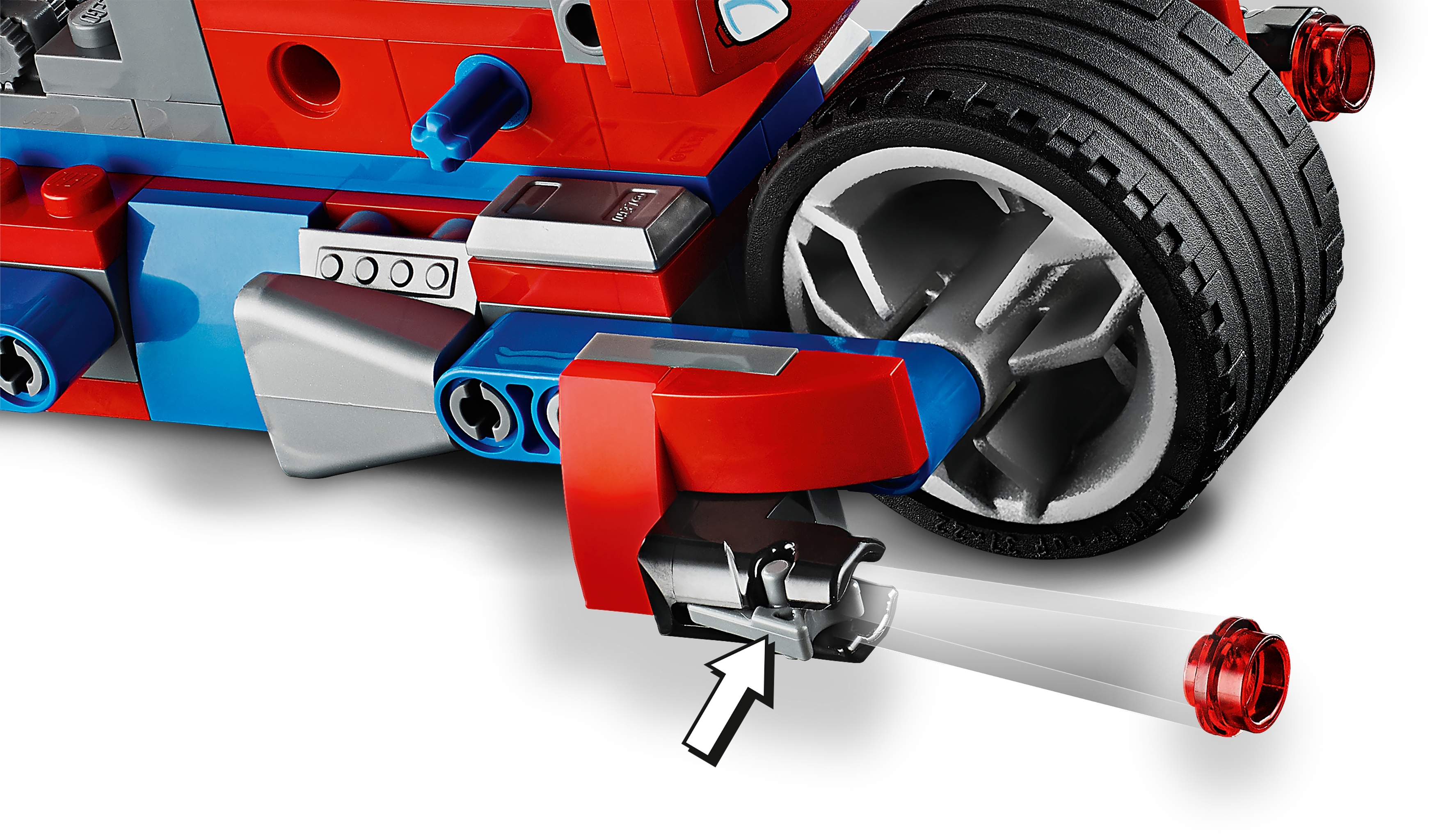 Doc Ock hat vier gefährliche Roboterarme. Dem können Spider-Man und seine dynamische Tochter Spider-Girl das tolle Spider-Cycle entgegensetzen. Kinder lieben es, das Motorrad in 2 coole Maschinen zu zerteilen: in Spider-Mans rasantes Bike und die riesige „Krabbelspinne“. Shooter, Netze und viele andere Elemente bieten einem oder mehreren Fans unzählige Spielmöglichkeiten.