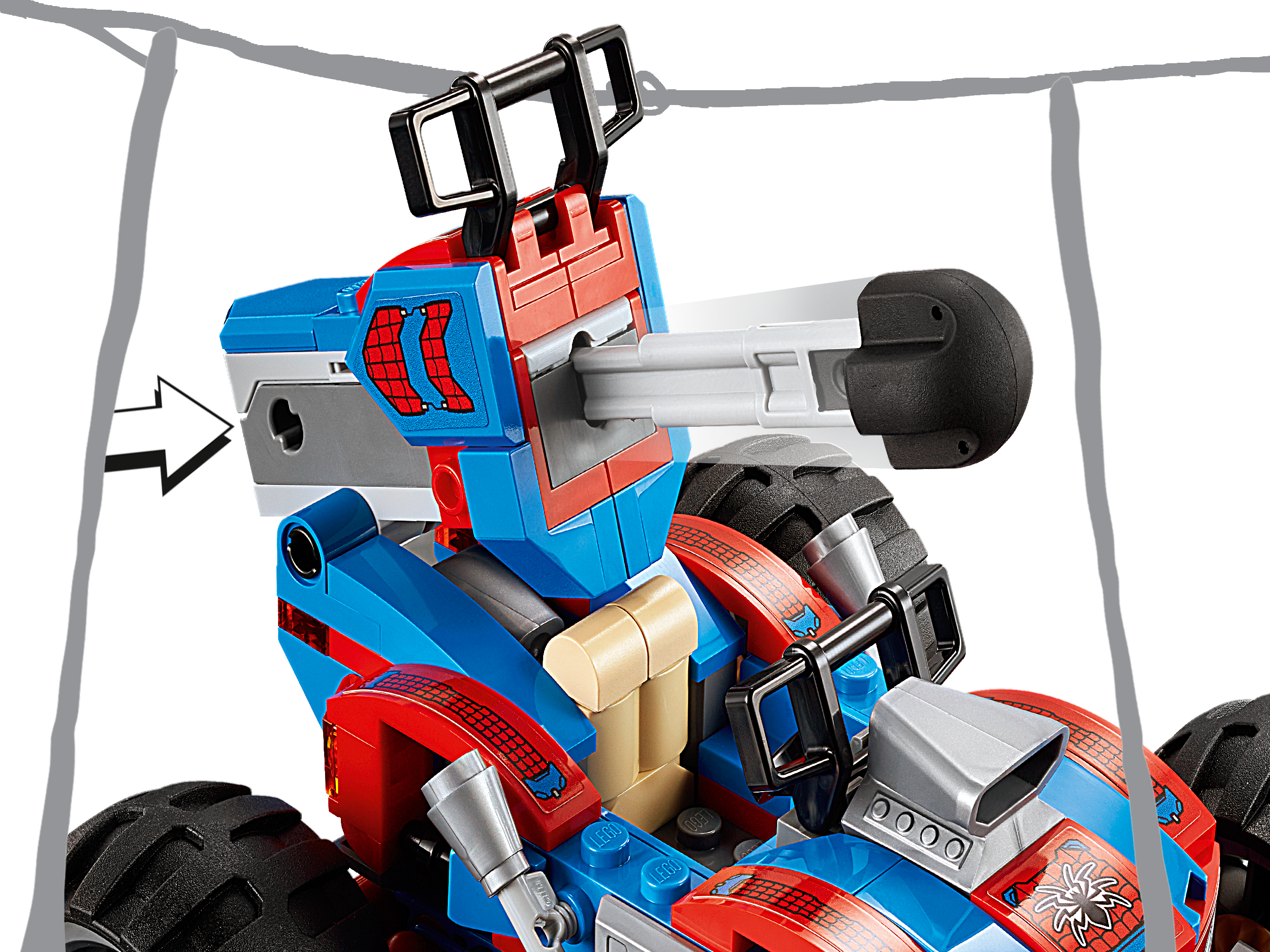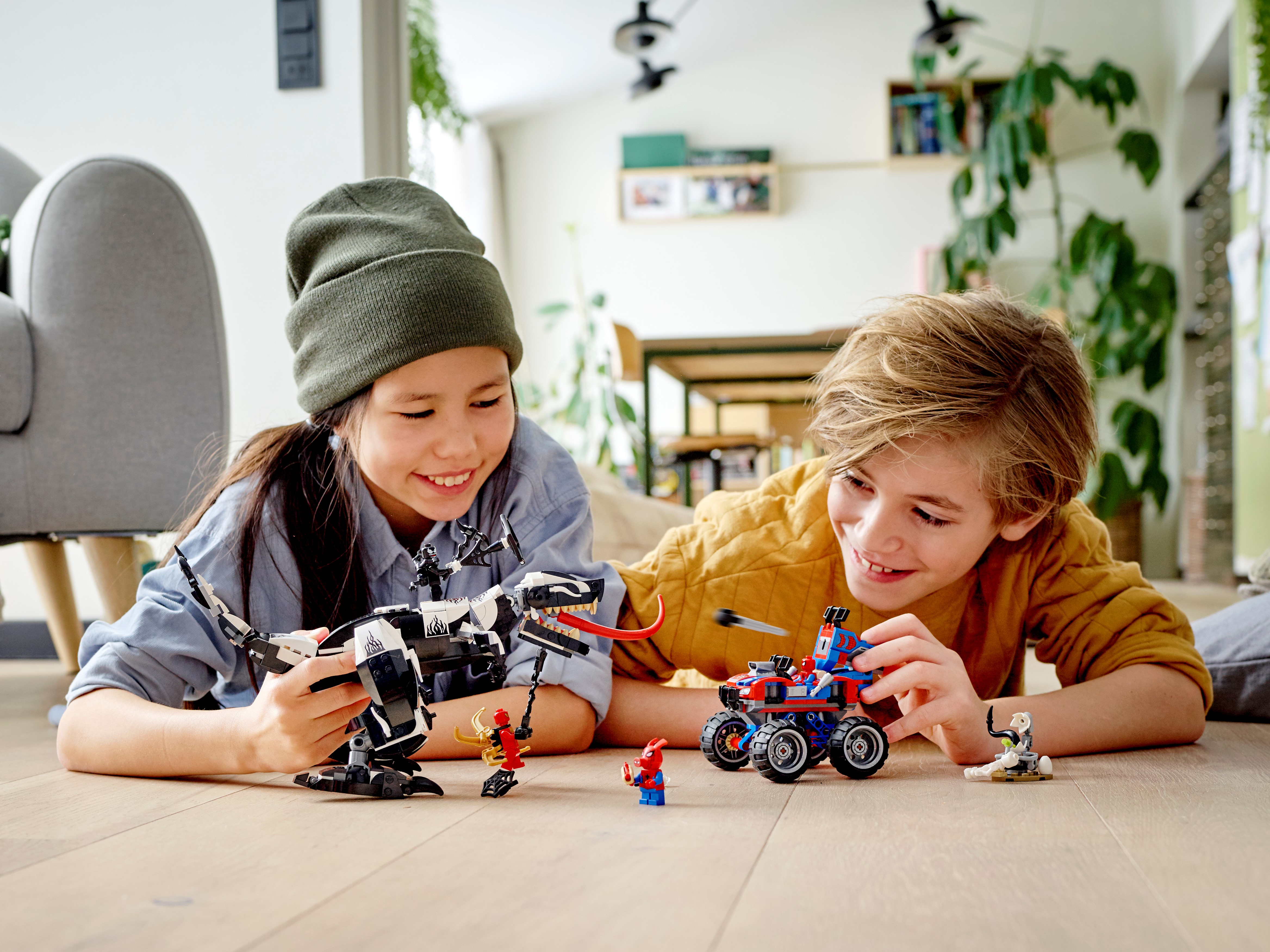 • Das kreative Spielerlebnis wird noch spannender, wenn Kinder die Venom-Minifigur in den Venomosaurus mit dem gefährlichen Schnappmaul und dem schwarzen Netz setzen und Spider-Man in sein Fahrzeug steigen lassen, das über fantastische Ausrüstung und eine Superfederung verfügt.