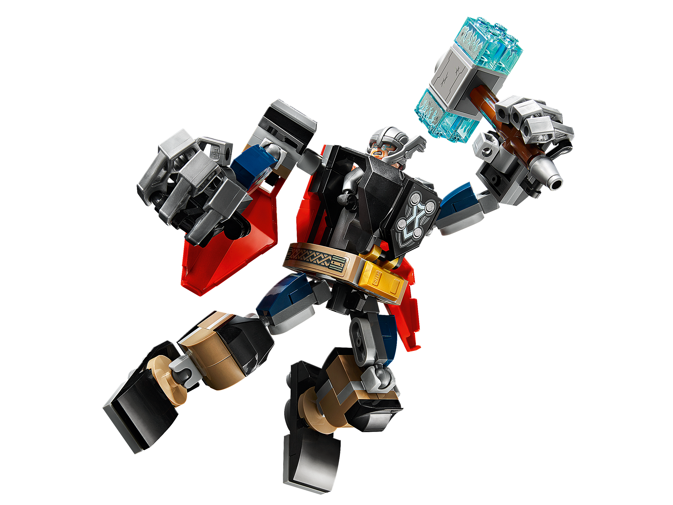 • Enthält Thor als Minifigur und einen baubaren Mech mit großem Hammer, der in seine Greifhand passt, sowie einen kleineren Hammer für die Minifigur, der sich auch am Bein des Mech befestigen lässt.