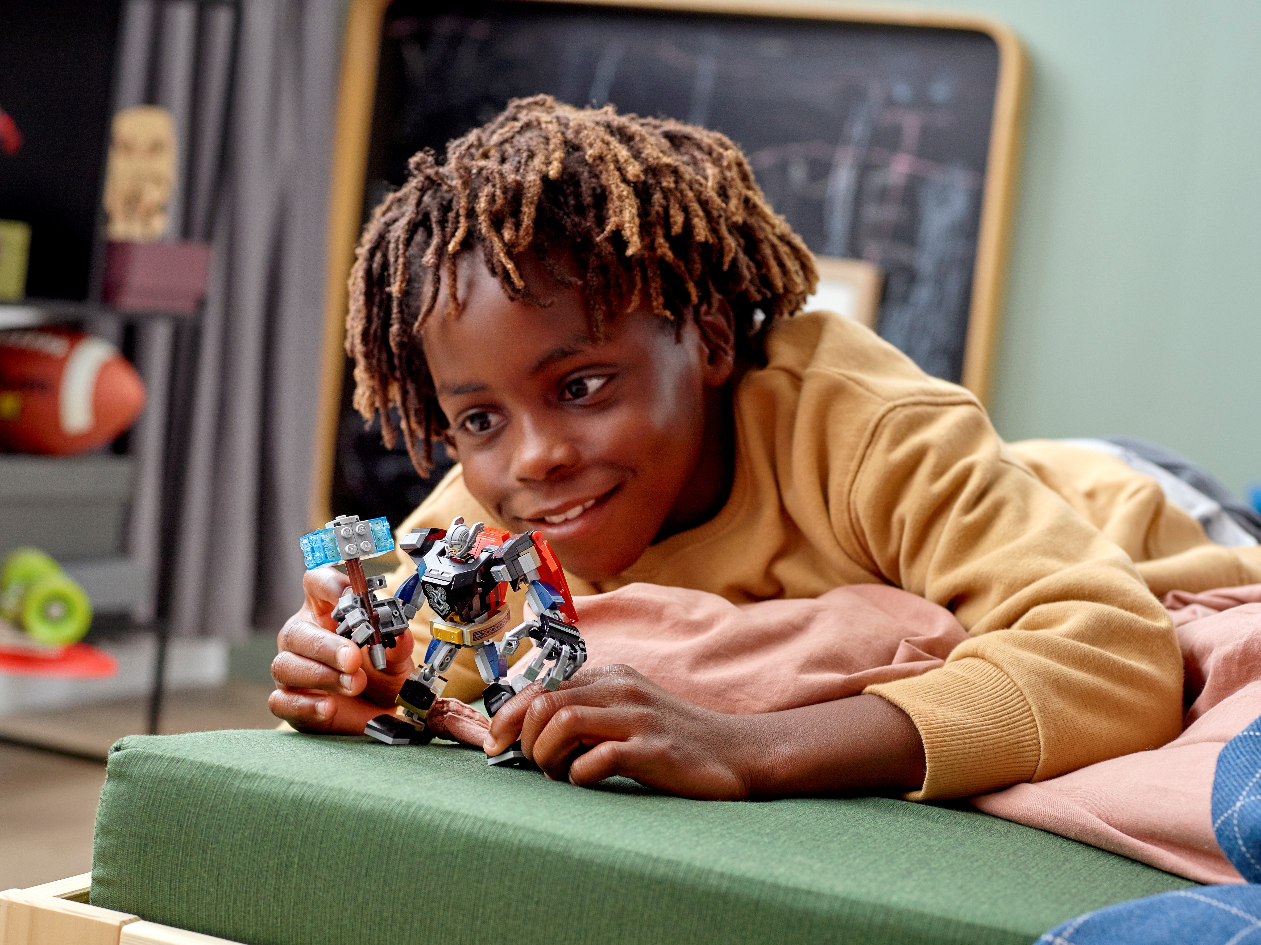 • Es gibt noch weitere LEGO® Marvel Mechs zum Sammeln und Kombinieren, um Kindern unzählige Spielmöglichkeiten zu bieten, damit sie Filmszenen nachstellen und eigene Geschichten als packende Rollenspiele inszenieren können.