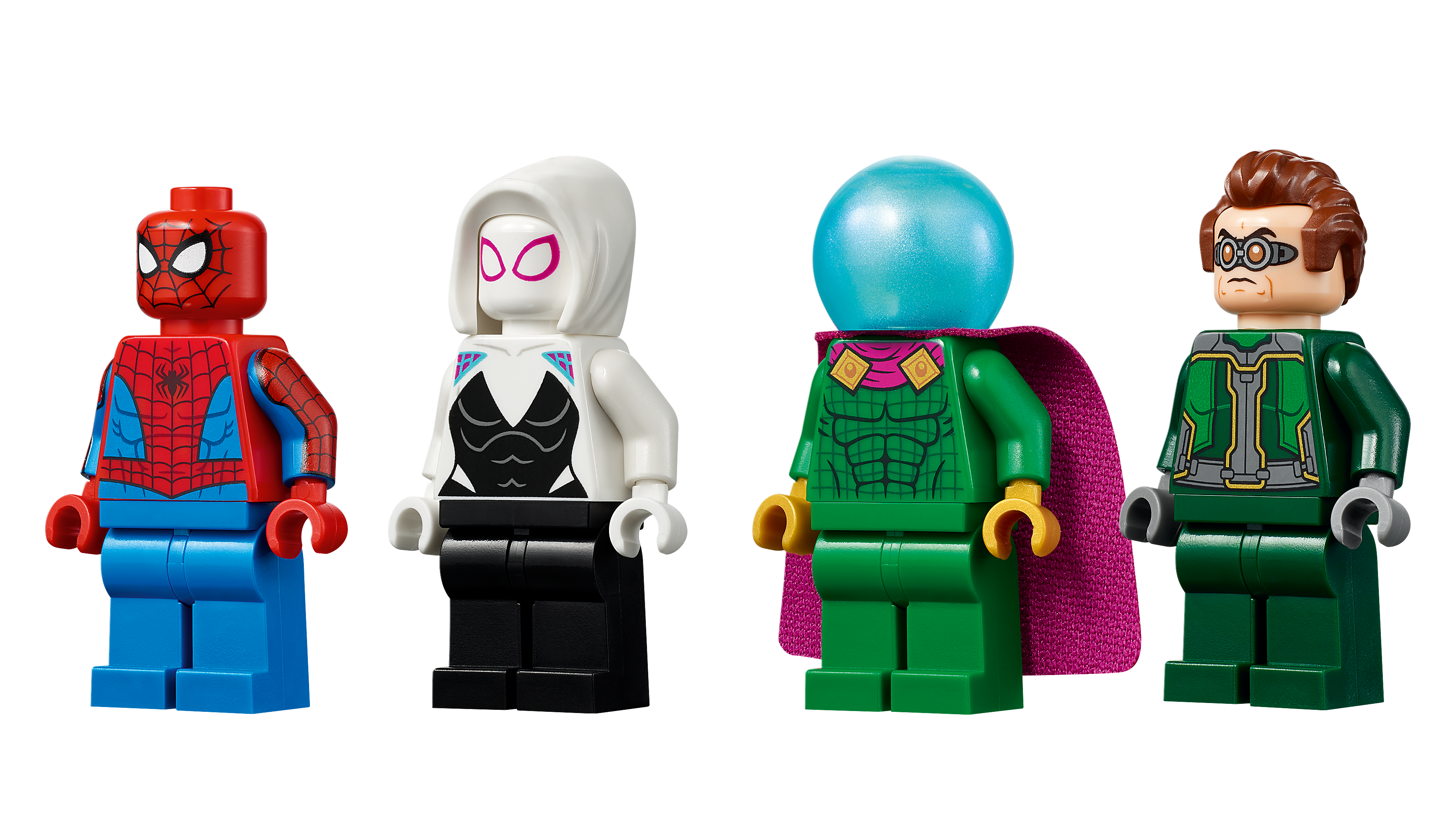 • Zu den witzigen Extras zählen Spider-Gwens Skateboard und Netze, Mysterios schimmernder Kuppelhelm sowie Geld als Beute für Doctor Octopus.