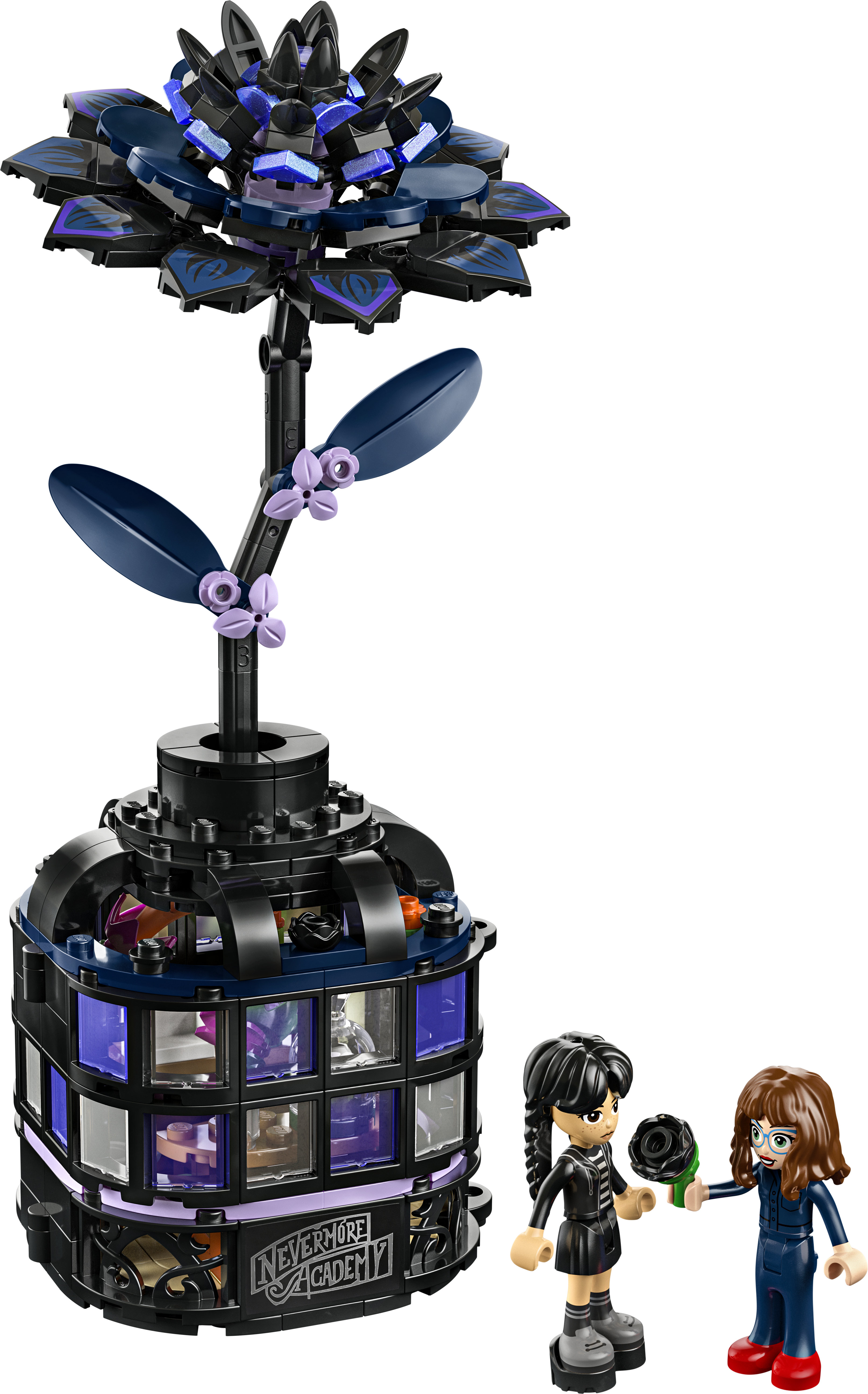 • 2 LEGO® Wednesday Spielfiguren: Die beiden Spielfiguren Wednesday Addams und Marilyn Thornhill (Wednesdays Botaniklehrerin) laden Kinder zu vielen fantasievollen Rollenspielen und Abenteuern ein