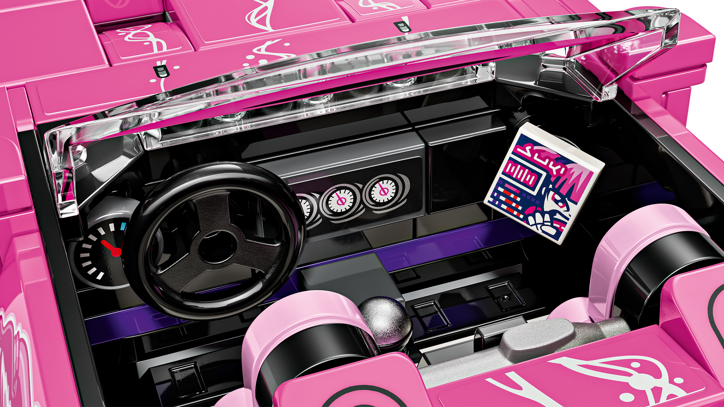 Dieses LEGO Fast & Furious Auto hat jede Menge originalgetreue Funktionen wie den TV-Bildschirm, den Heckflügel, den Kühlergrill, die Scheinwerfer, die Räder und die markanten Anime-Grafiken auf der Motorhaube, an den Seiten und am Heck. Das LEGO Set beinhaltet neben dem Modellauto auch die Minifigur Suki, die Kinder für spannende Straßenrennen und Rollenspiele ans Steuer setzen können.