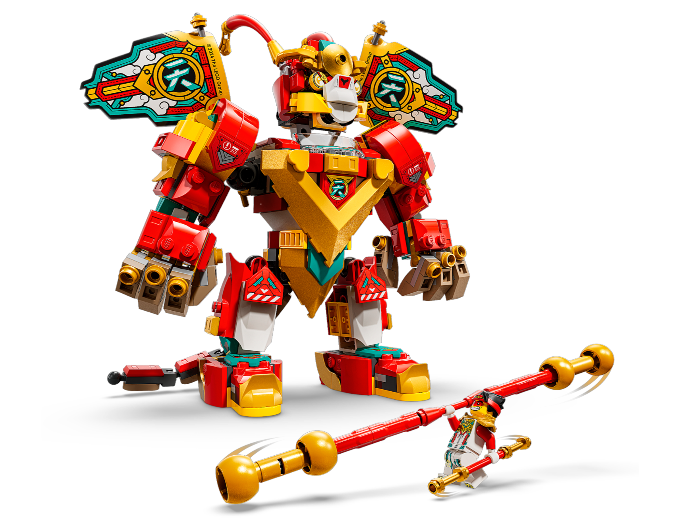 Kinder können sich außerdem auf ein ebenso einfaches wie intuitives Bauabenteuer mit der LEGO Builder App freuen. Die App lässt sie 3D-Ansichten der Modelle vergrößern und drehen, Sets speichern und ihren Baufortschritt verfolgen. Zur Feier des 5-jährigen Jubiläums von LEGO Monkie Kid und für noch mehr Spielspaß kann man dieses coole Spielzeug auch mit den anderen separat erhältlichen Sets der Produktreihe (80050, 80053 und 80054) kombinieren.