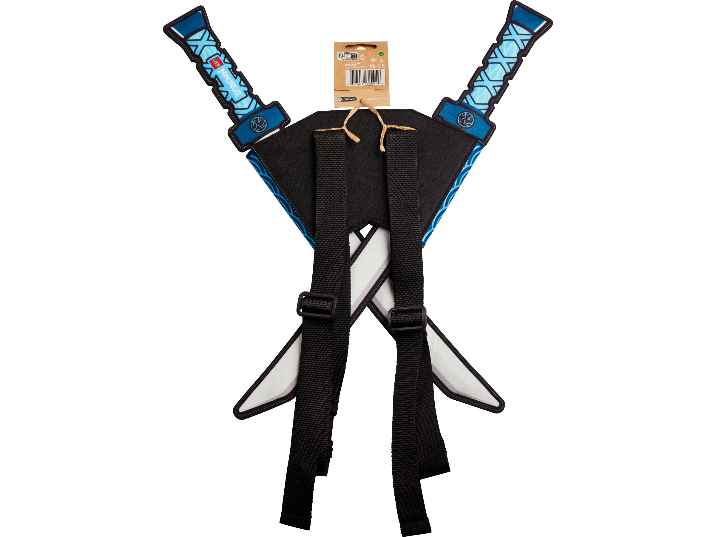 LEGO® NINJAGO® Gekreuzte Katanas mit Scheide (854258) ist genau das richtige Set, um Ninja-Fans in die Rolle ihrer Helden schlüpfen und viele Stunden gefesselt spielen zu lassen. Beide Schwerter sind aus recycelten Plastikflaschen gefertigt und bestehen aus einem kunstvoll verzierten Griff und einer großen silbernen Klinge. In der schwarzen Scheide mit Trageriemen kann sich dein Kind die beiden Schwerter auf den Rücken schnallen – genau wie Kai, Cole, Nya und der Rest des Ninja-Teams.