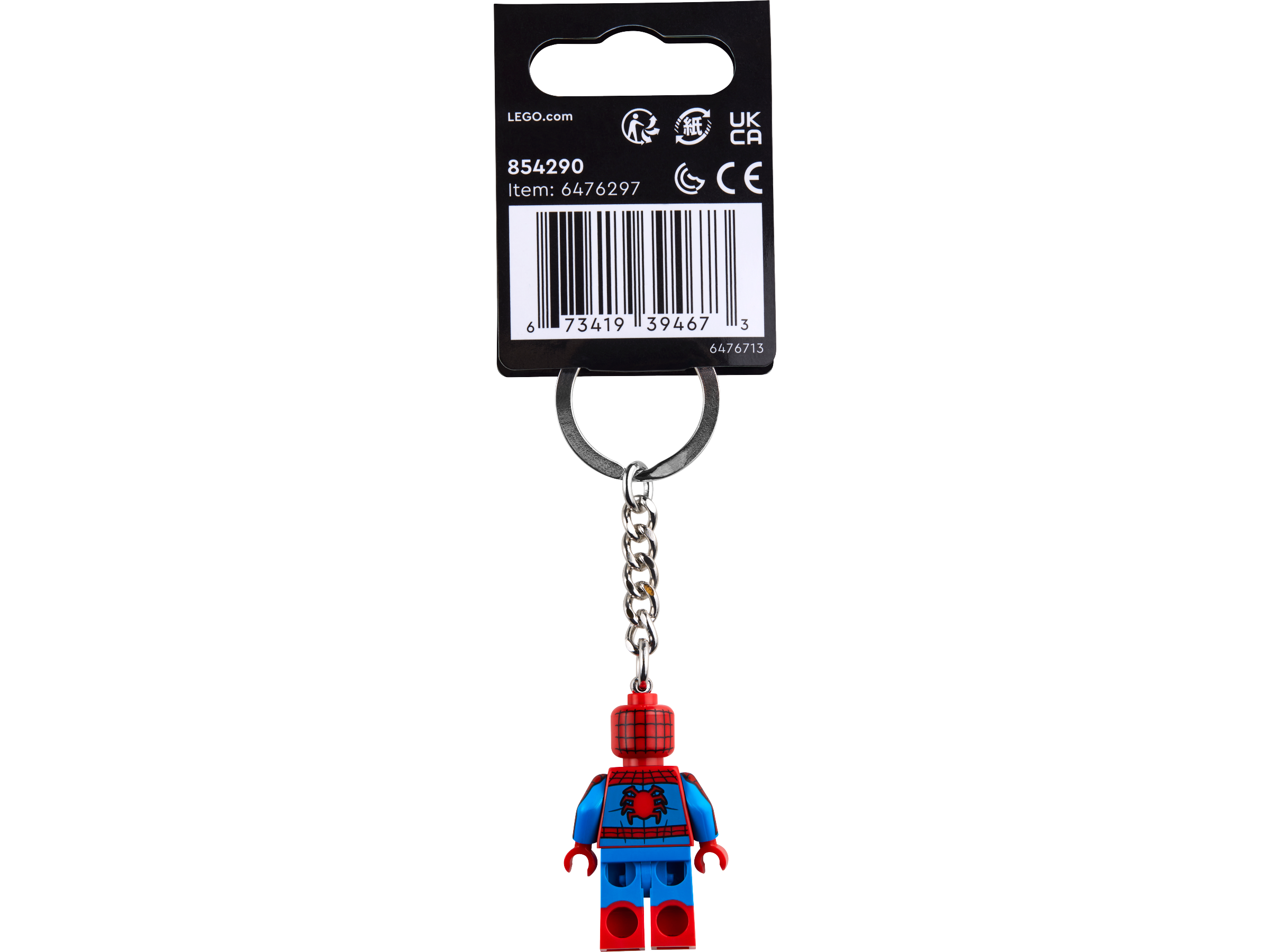 Anhänger für deine Sachen: Mithilfe des Schlüsselrings an der robusten Metallkette kann man die Minifigur Spider-Man sicher an Schlüsseln, Taschen, Rucksäcken und Ähnlichem befestigen