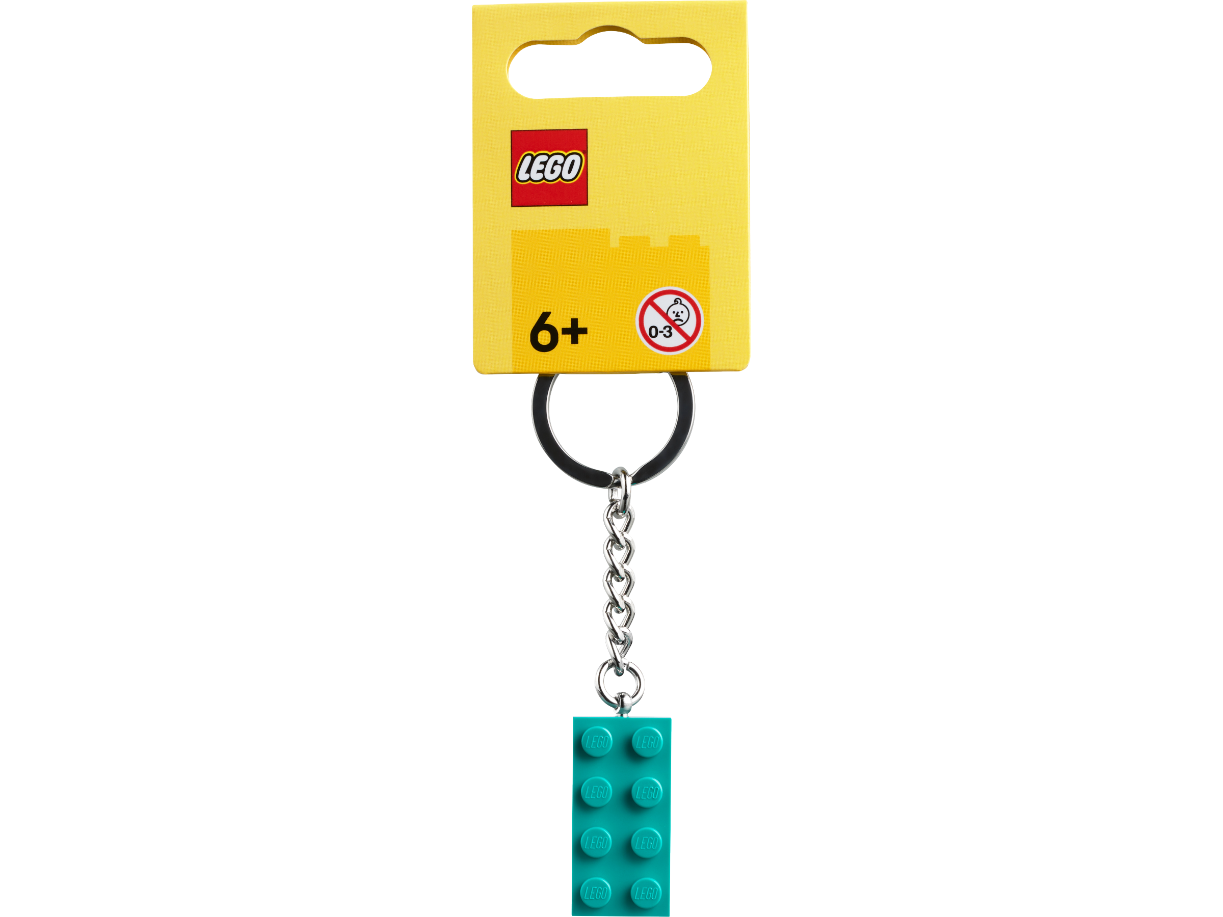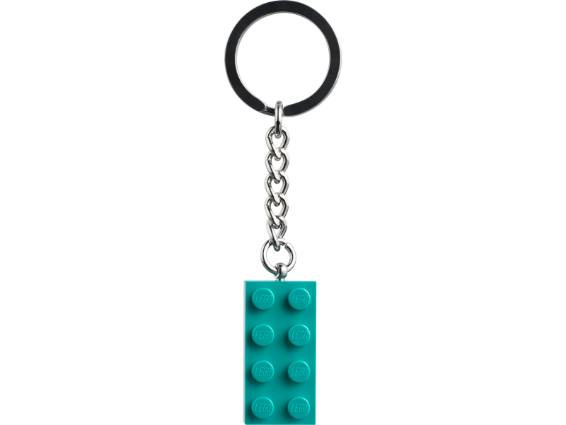 • LEGO® Stein Schlüsselanhänger: Der 2x4 Stein in Blaugrün lässt sich nicht von der robusten Metallkette mit Schlüsselring lösen