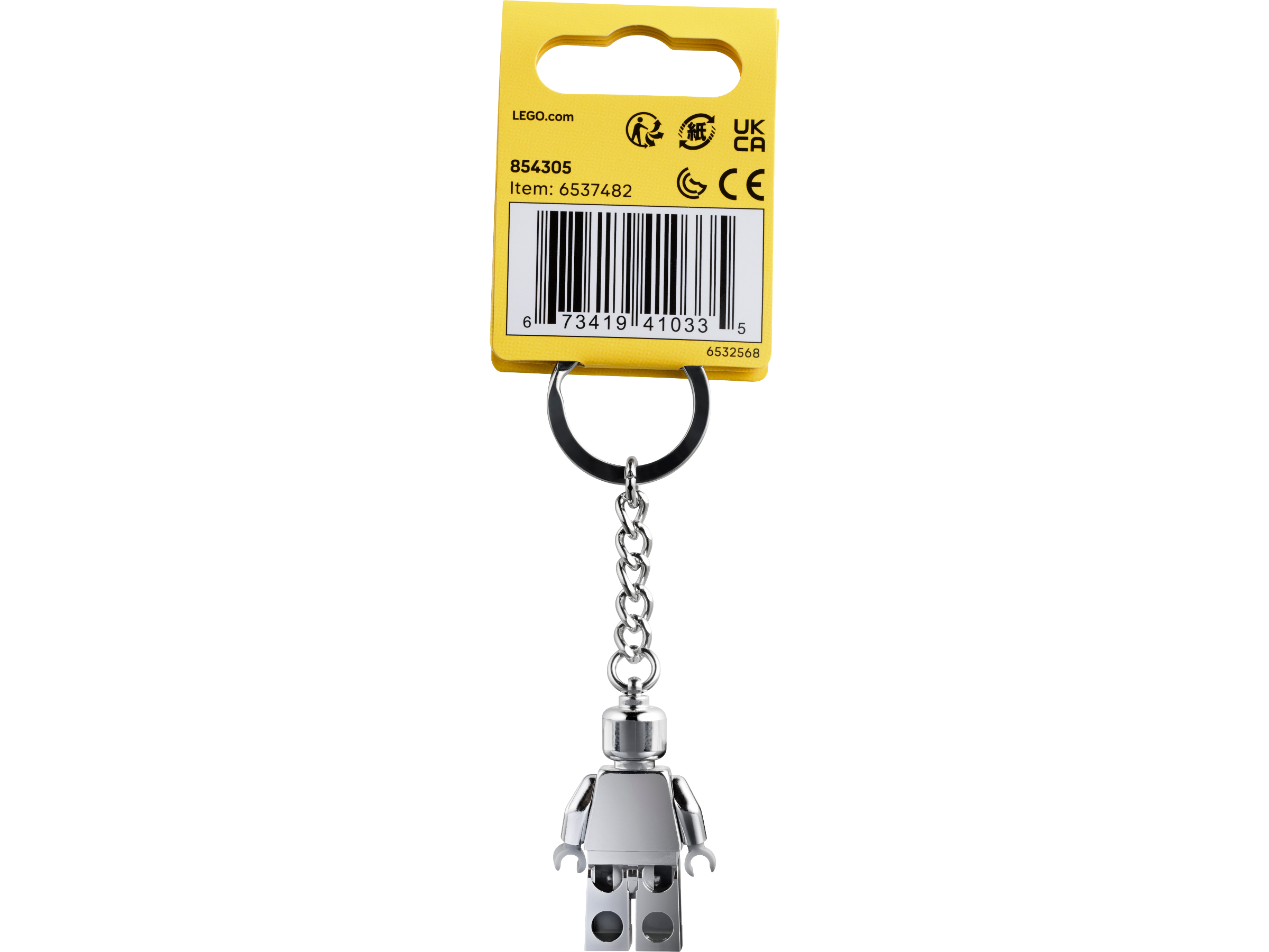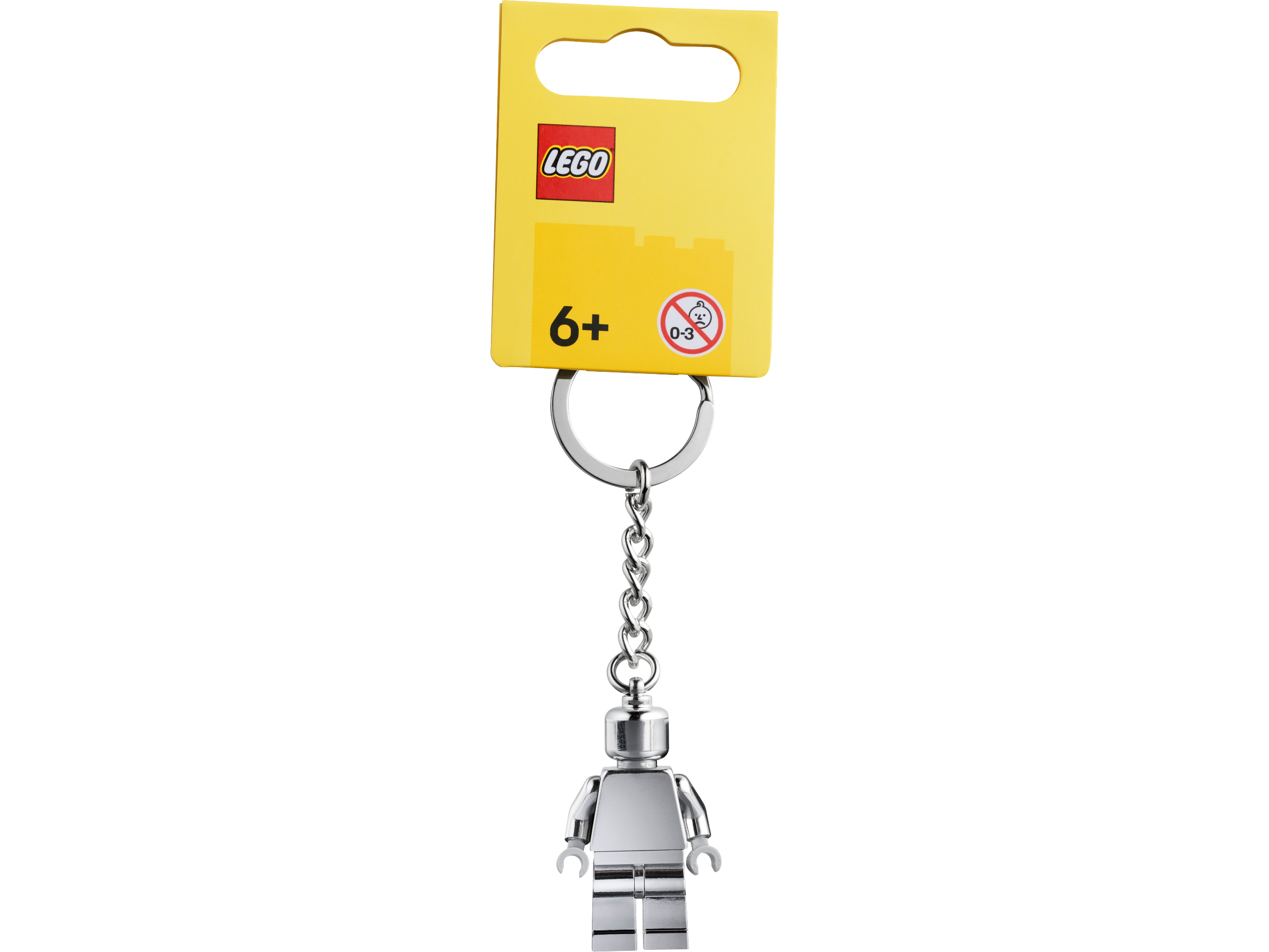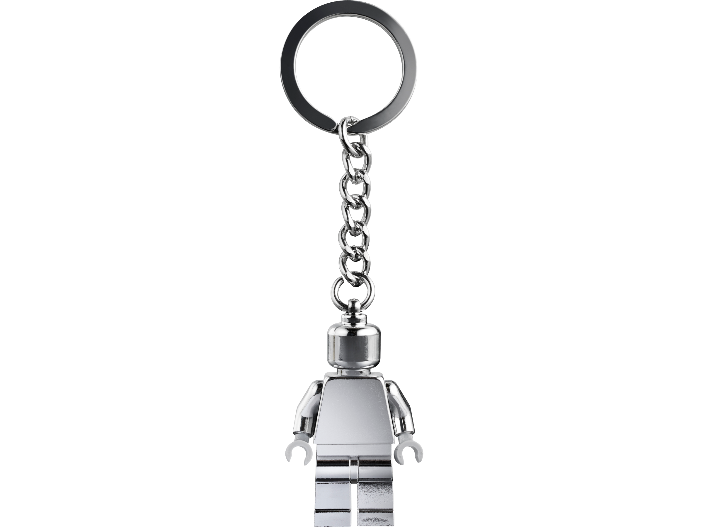Schlüsselanhänger mit silberner Minifigur: Man kann die silberfarbene LEGO® Minifigur nicht von der robusten Metallkette mit Schlüsselring lösen