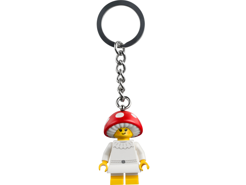 • Fliegenpilzmädchen Schlüsselanhänger: Das Fliegenpilzmädchen ist eine LEGO® Minifigur, die man nicht von der robusten Metallkette mit Schlüsselring lösen kann